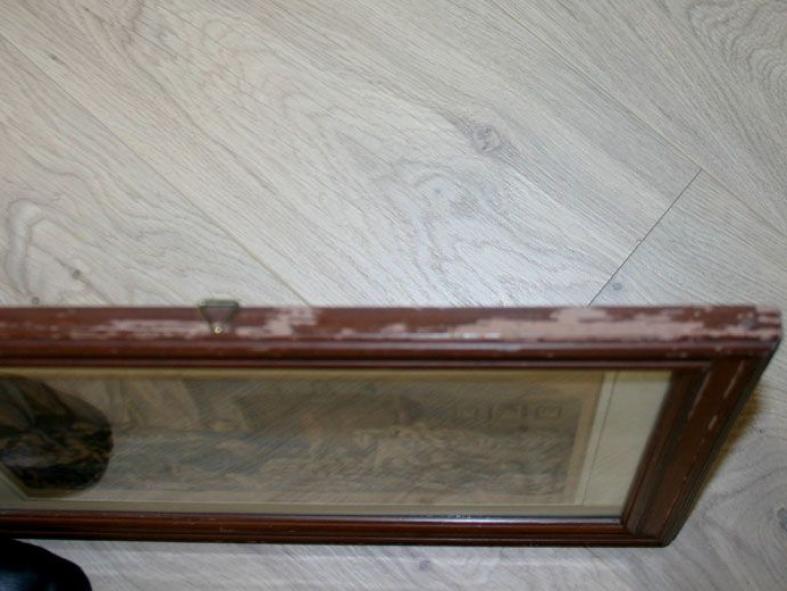 Holzrahmen ist teilweise Farbe weg, Holz leicht beschädigt