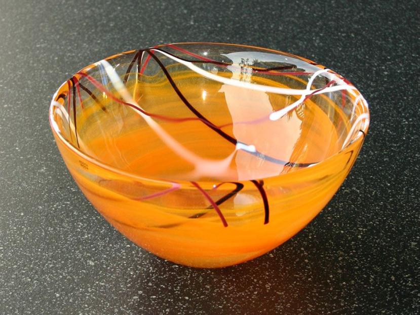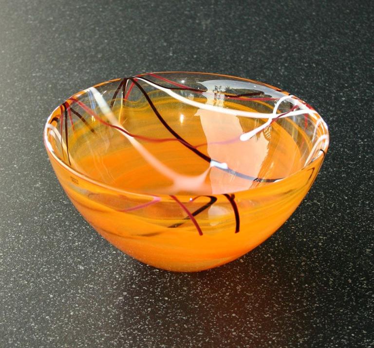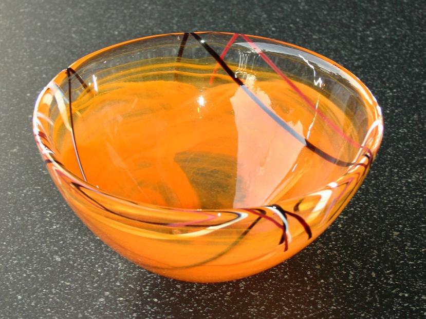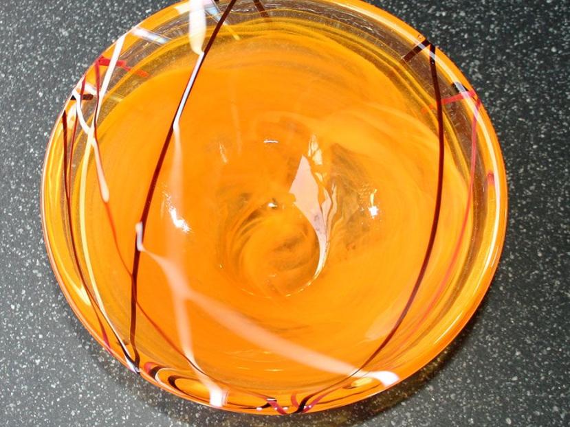 tolle Glasschale in orange Fädeneinzug, dekorativ - einfach toll!