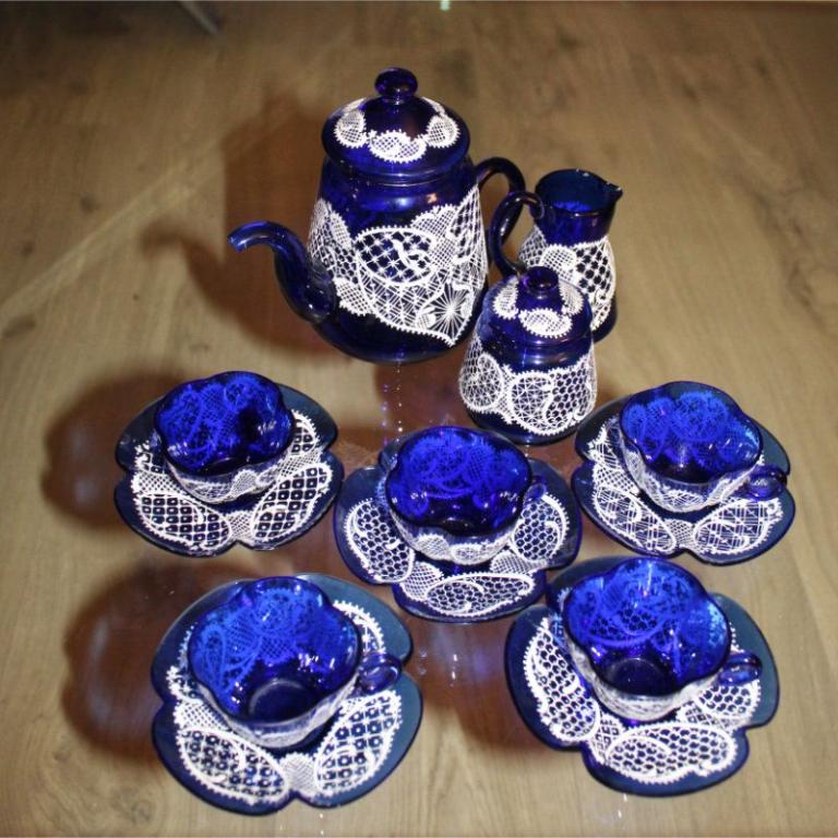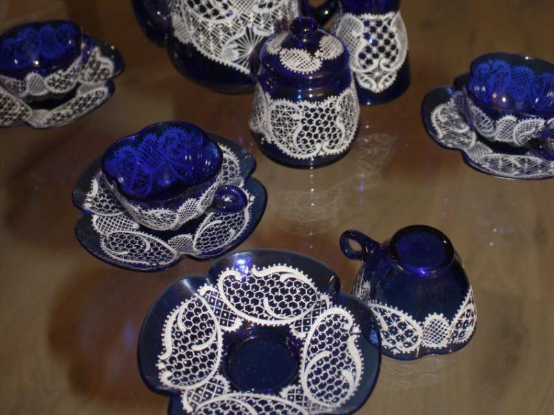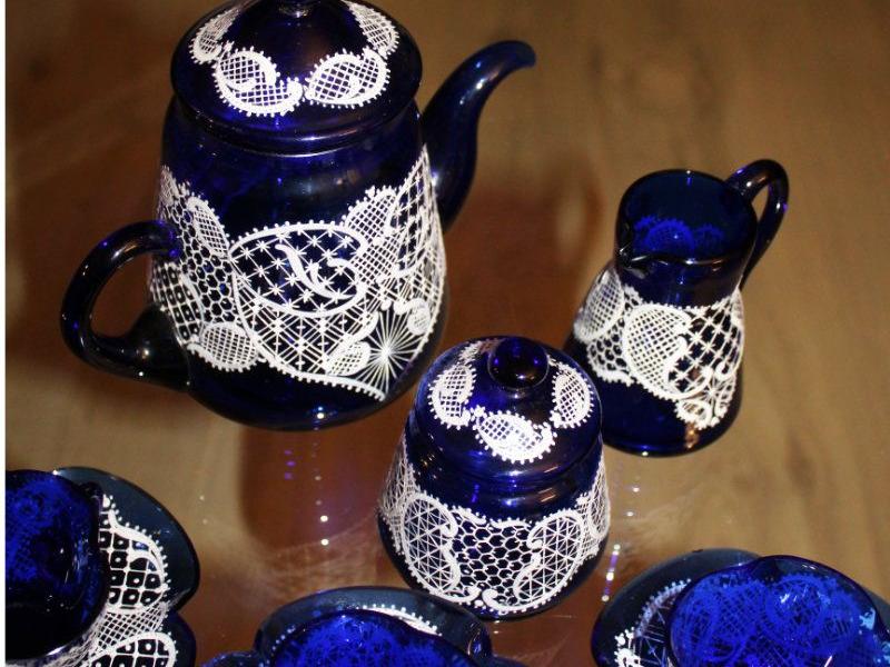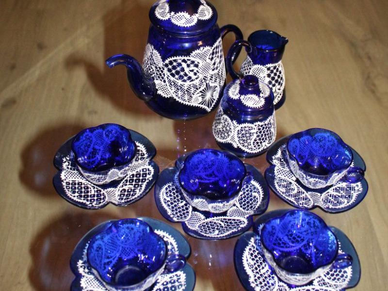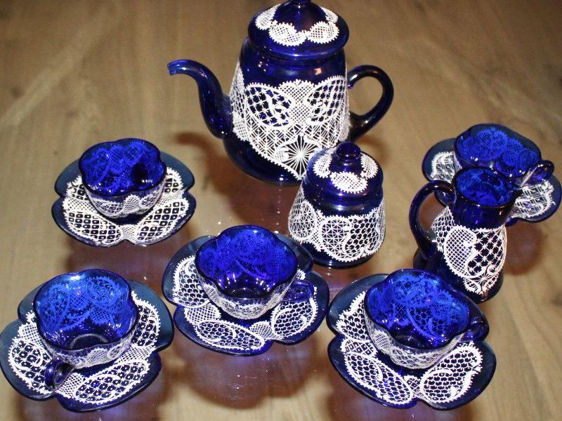 Venetian Lace enameled glass / Glas-Service Venedig mit emailliertem Spitzendekor
