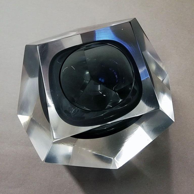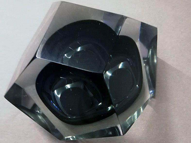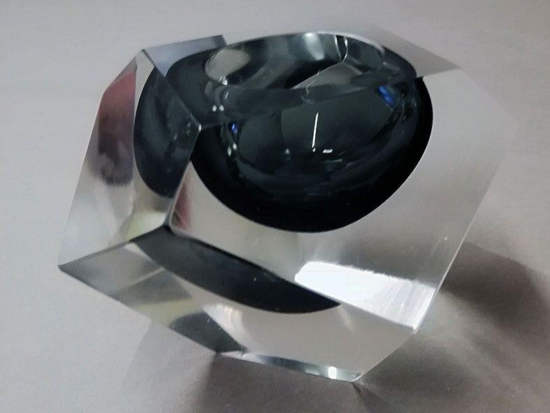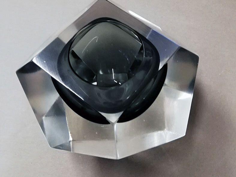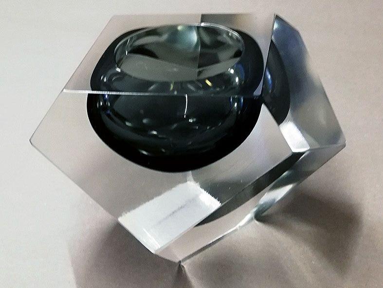 Überfangglas grau Innenschale - farblos aussen eckige Form
