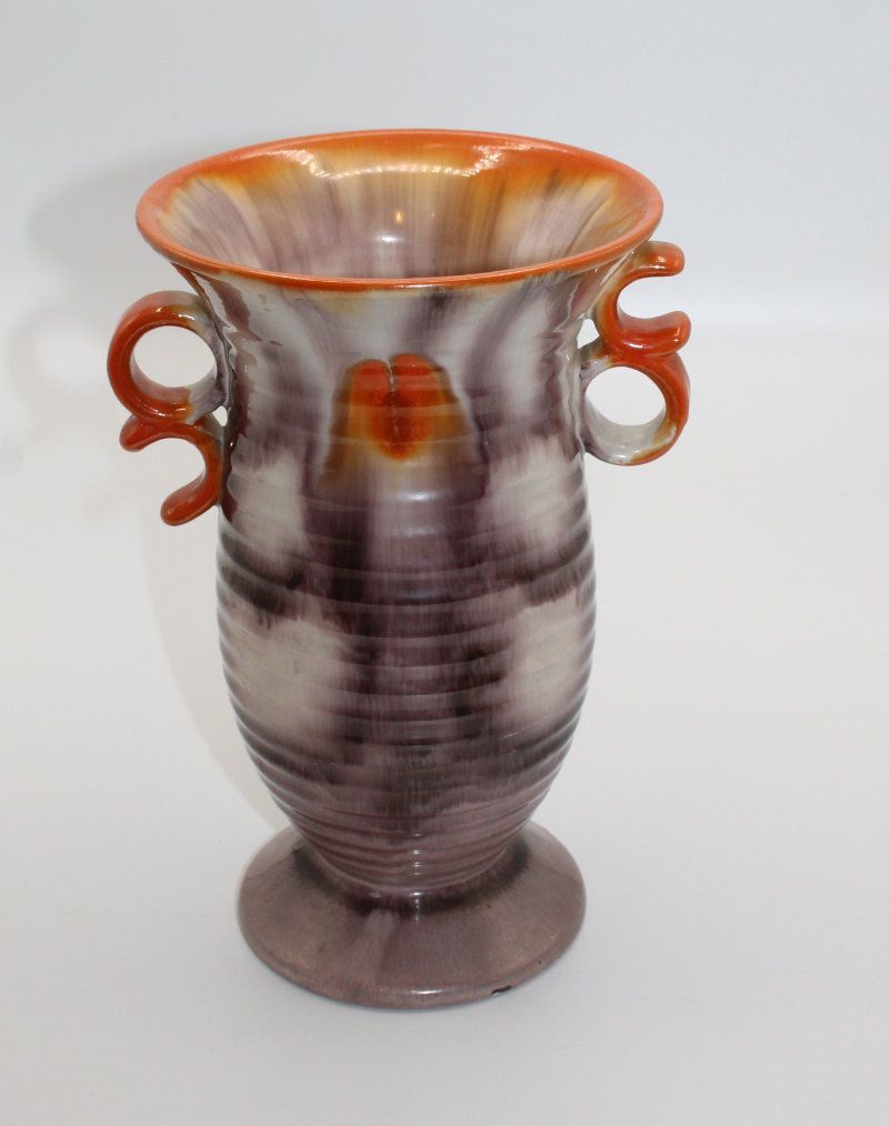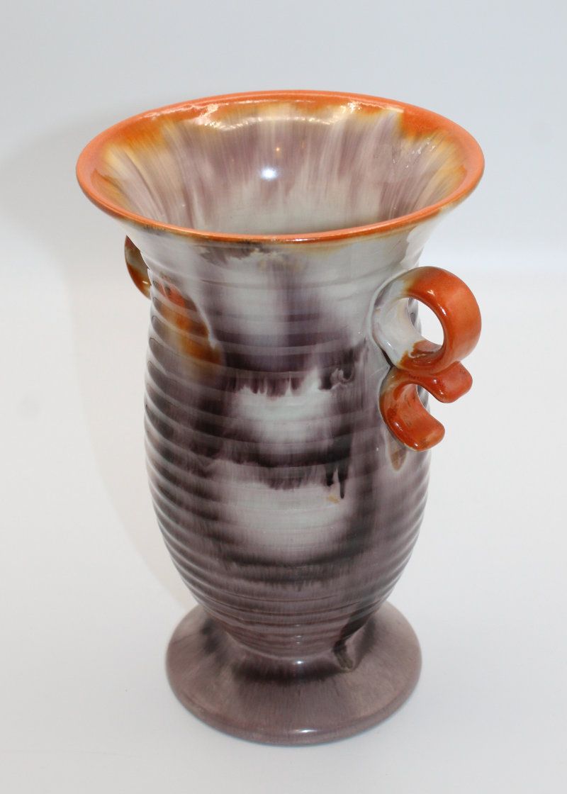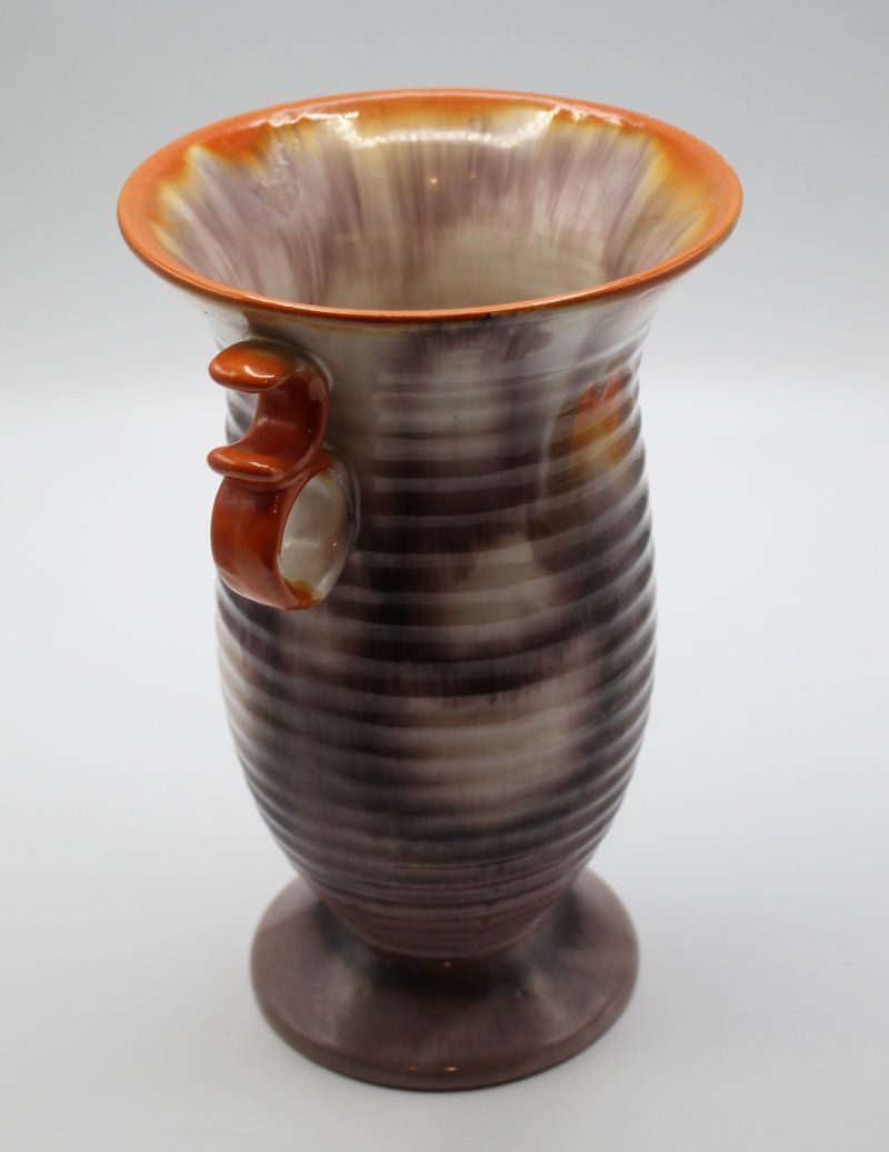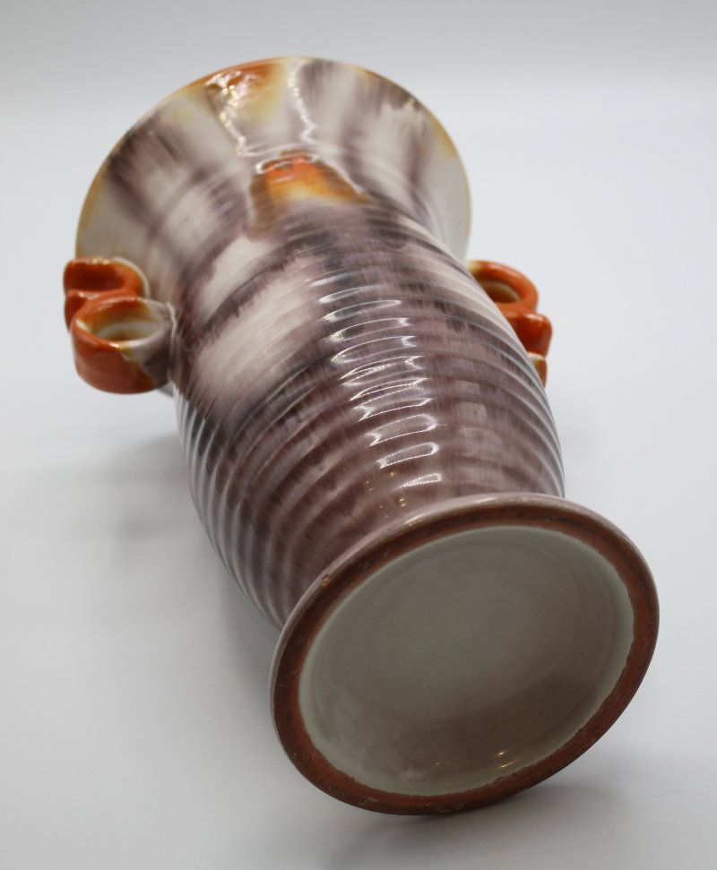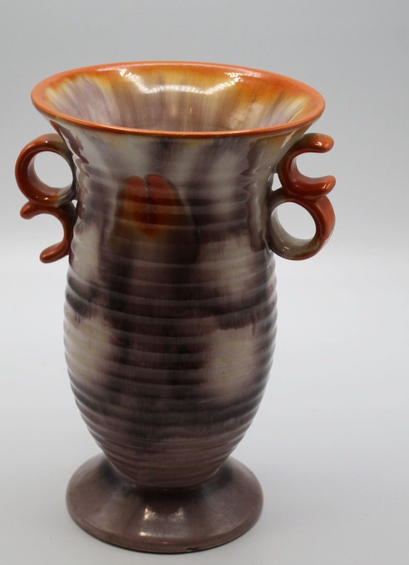 schöne, gut erhaltene Vase aus Keramik glasiert Art Deco 1920/30er Jahre in wunderschönen Farben Masse ca.: Höhe 23.5 cm, Durchm. oben 15 cm ohne Griffe