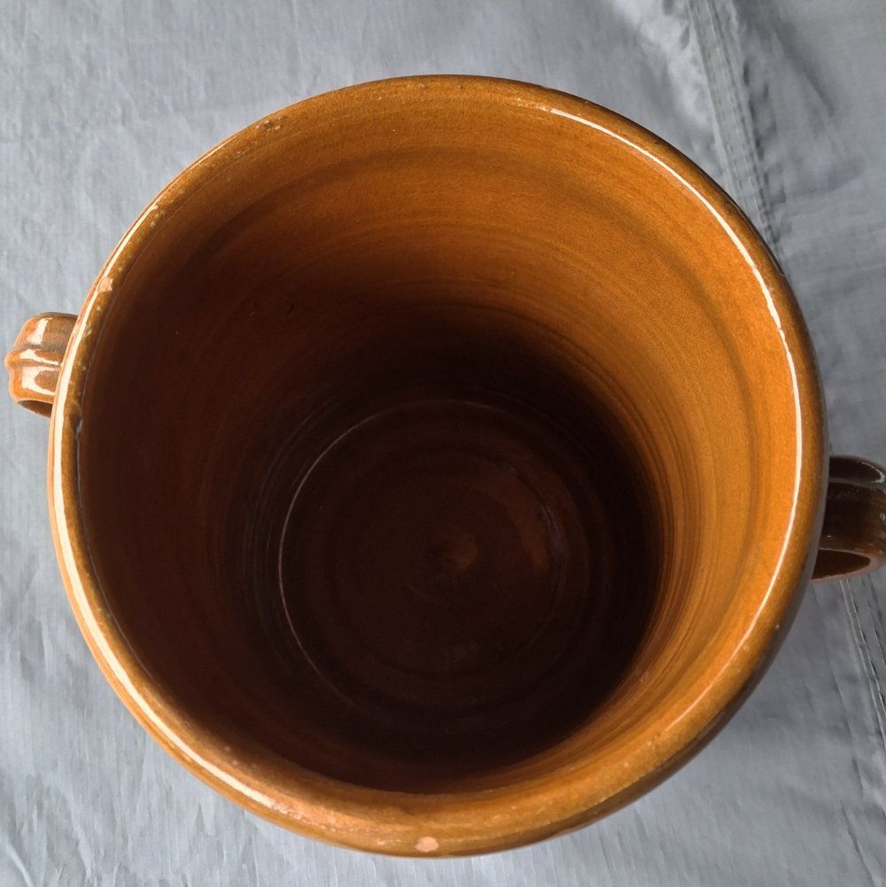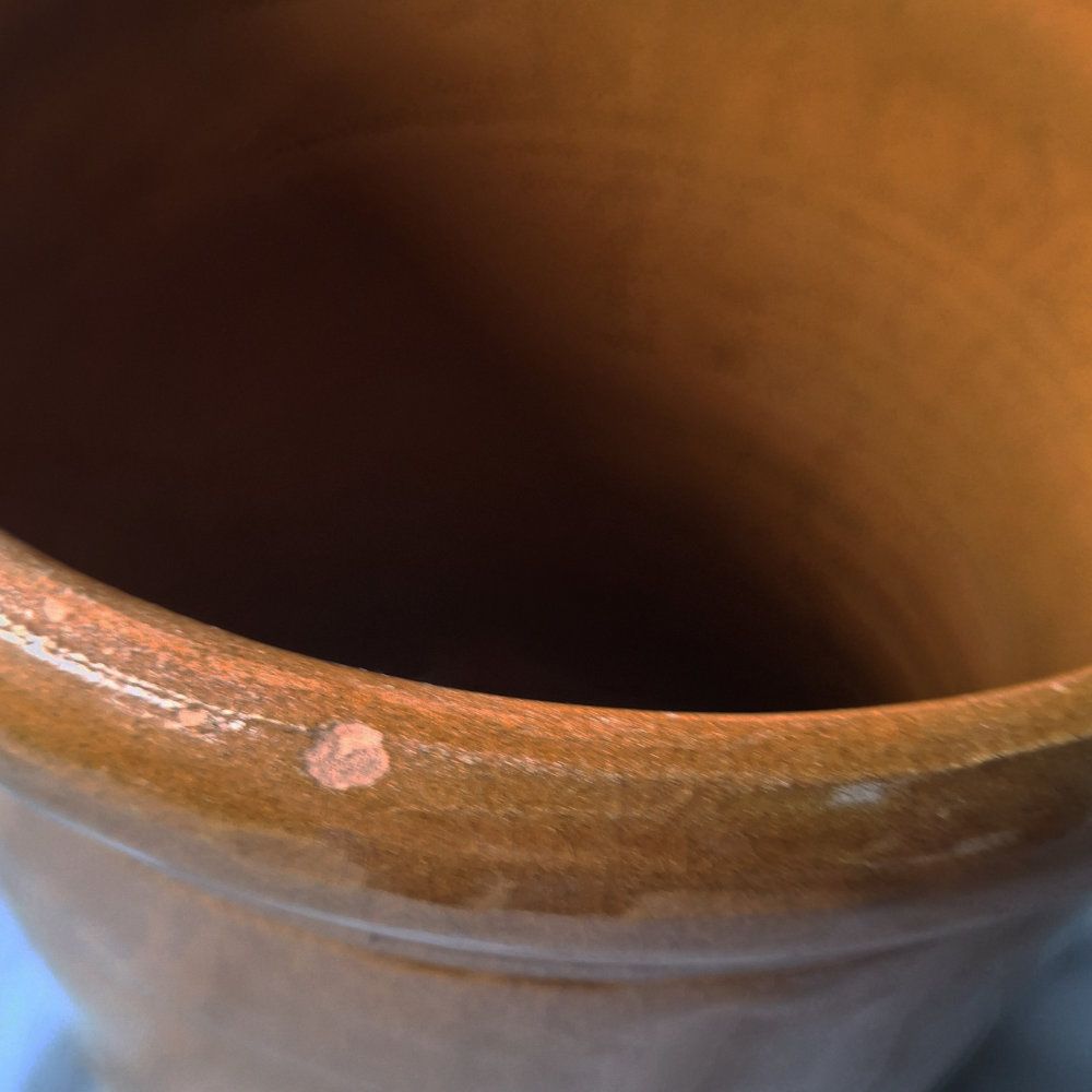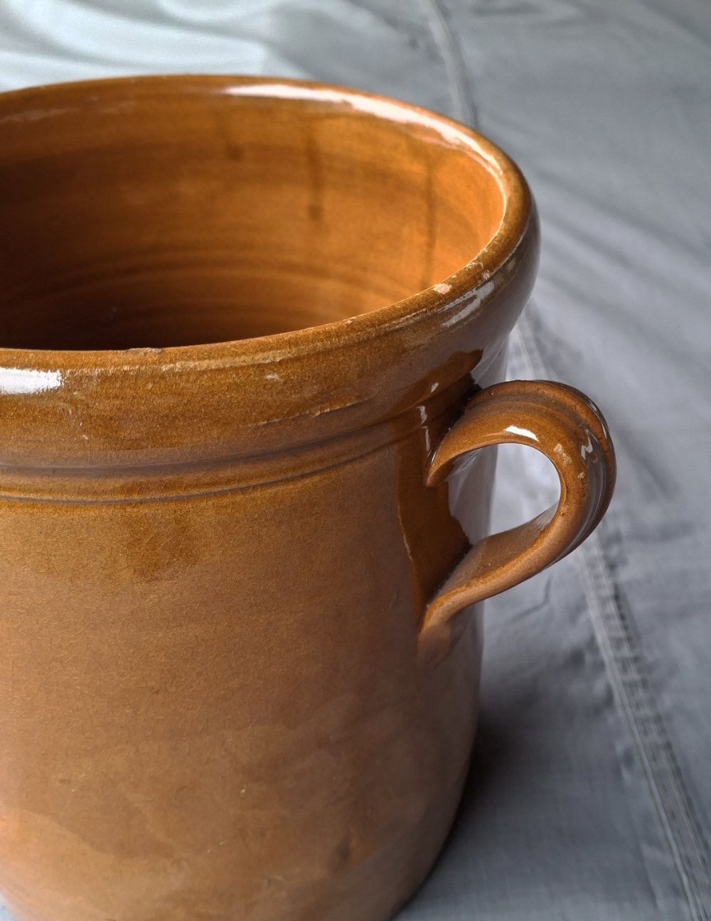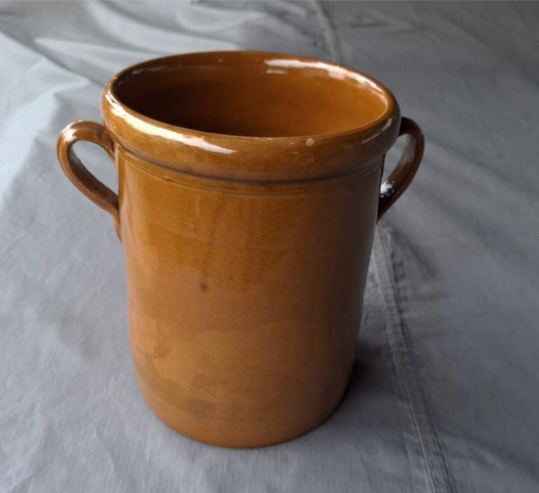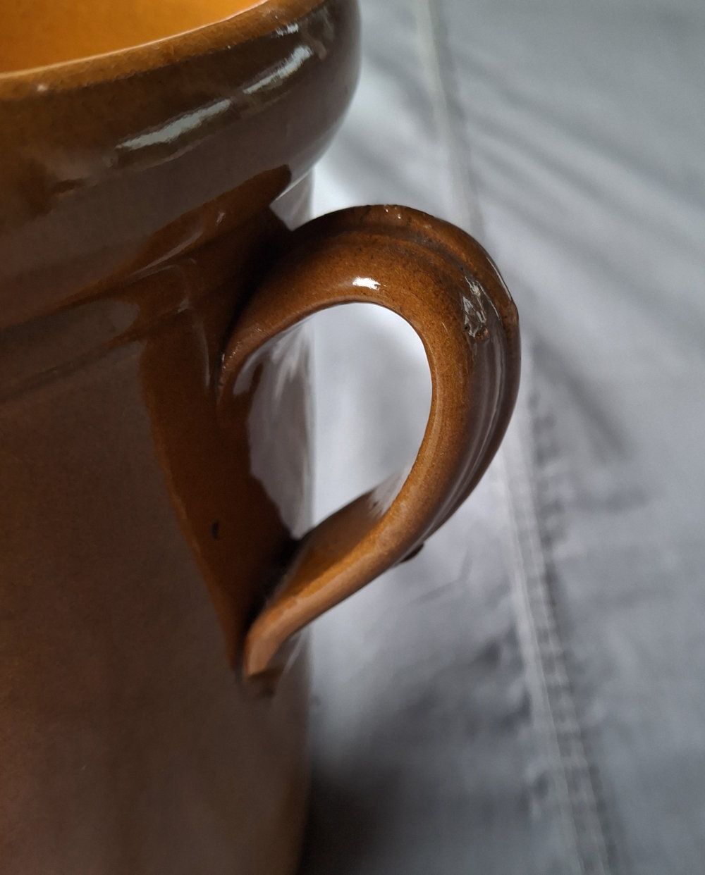 schöner, für's Alter gut erhaltener alter Steinzeug - Schmalztopf aus Omi's Zeiten Masse ca.: Höhe 25 cm, Durchmesser oben 20 cm (ohne Henkel gemessen) gebraucht, schöner Zustand, altersbedingte kleine Glasurabschläge s. Fotos