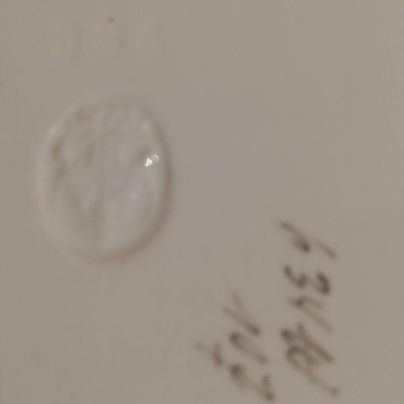 Feinsteingut glasiert / mit Präge-Stempel Rösler und handgeschr. Nummer