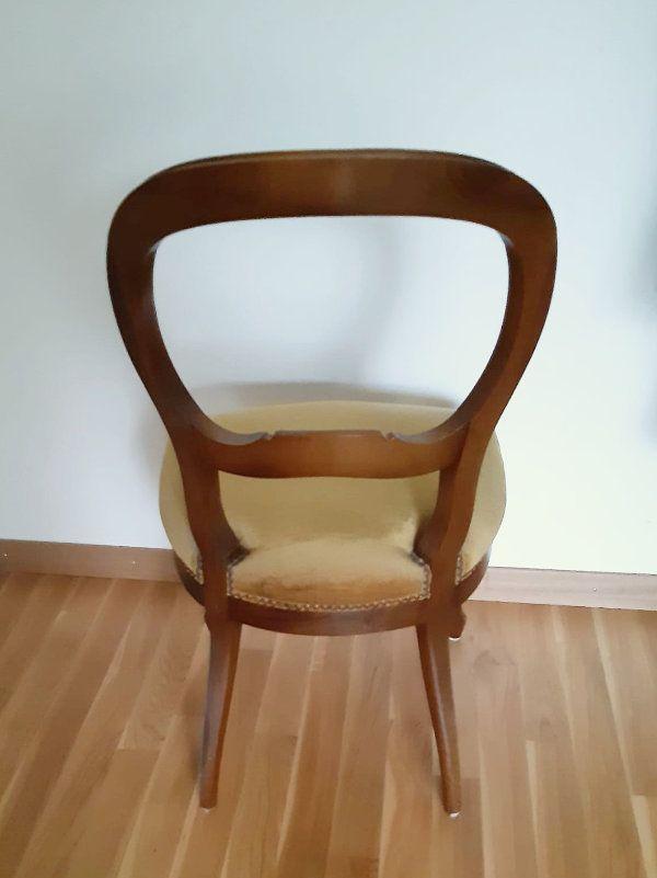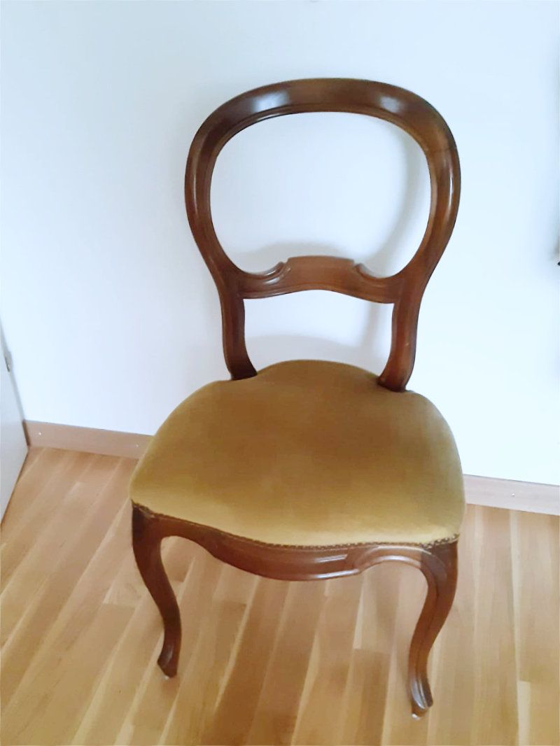 schöner, guterhaltener Louis Philippe-Stuhl aus Omi's Zeiten mit gepolsterter Sitzfläche (gut) allgemeinder Zustand gut, stabil Masse ca: Gesamthöhe bei Lehne 90 cm Sitzhöhe 45 cm Sitzbreite 50 cm