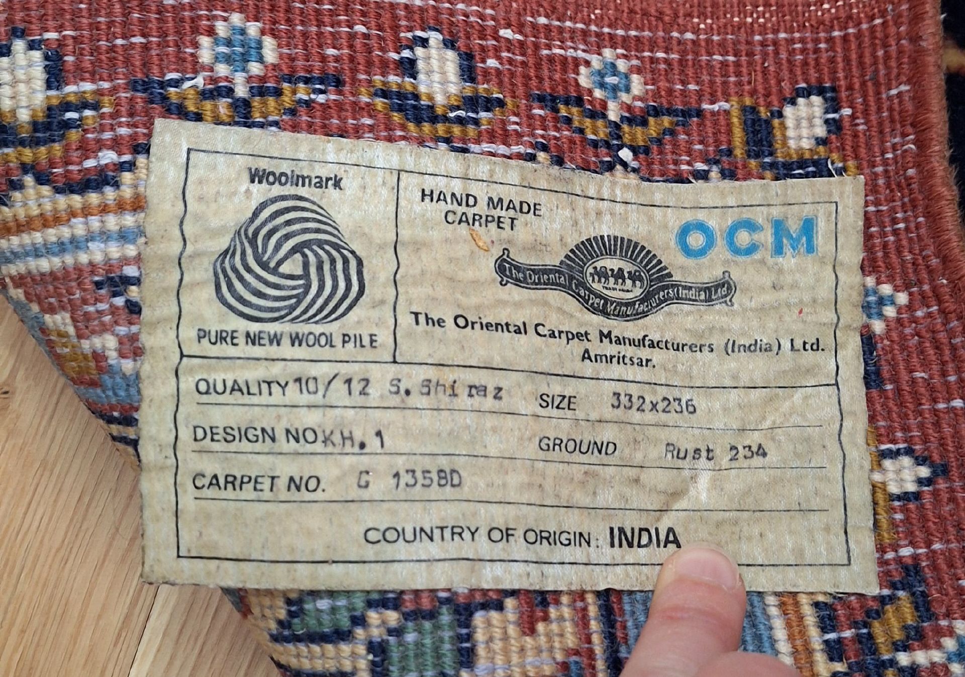 Grösse Teppich: 332cm x 236 cm (s. Foto)