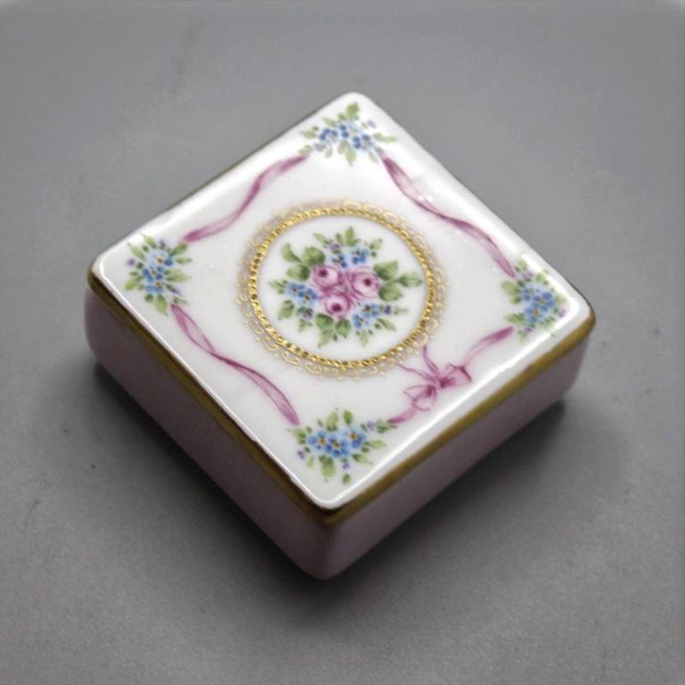sehr schöne, kunstvoll von handbemalte kleine Porzellandose