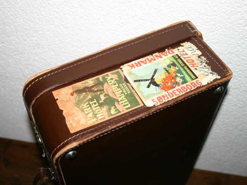antiker Lederkoffer - mit originalen Reiseaufklebern