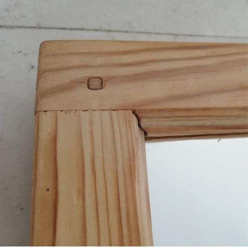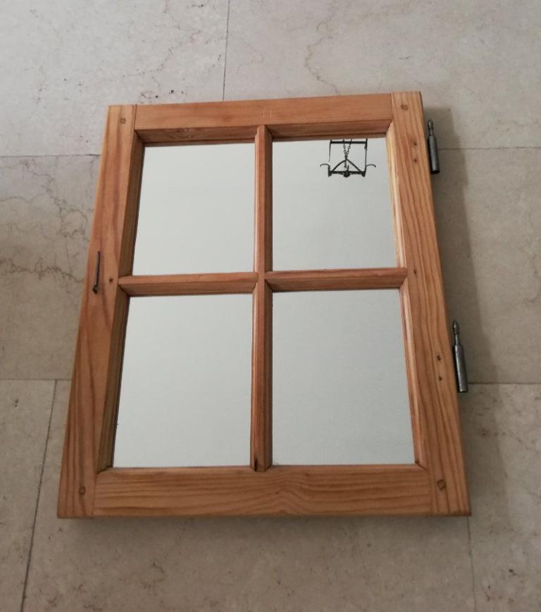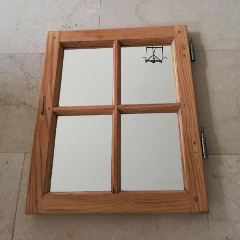 Holz natur, Holznägel / Spiegel Rahmen mit 4-er Unterteilung