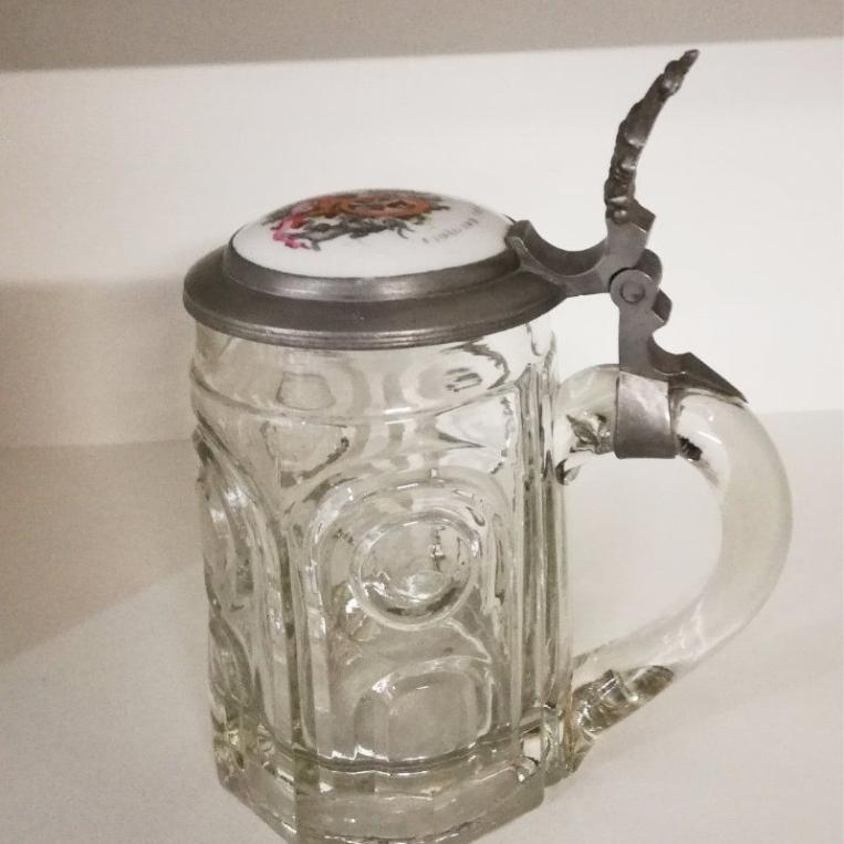 Glashumpen mit schönem Deckel "Hopfen und Malz Gott erhalt's"