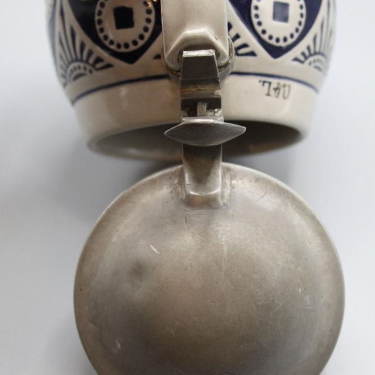 Zinndeckel mit Initialen AP (kleine Delle im Deckel s. Foto)