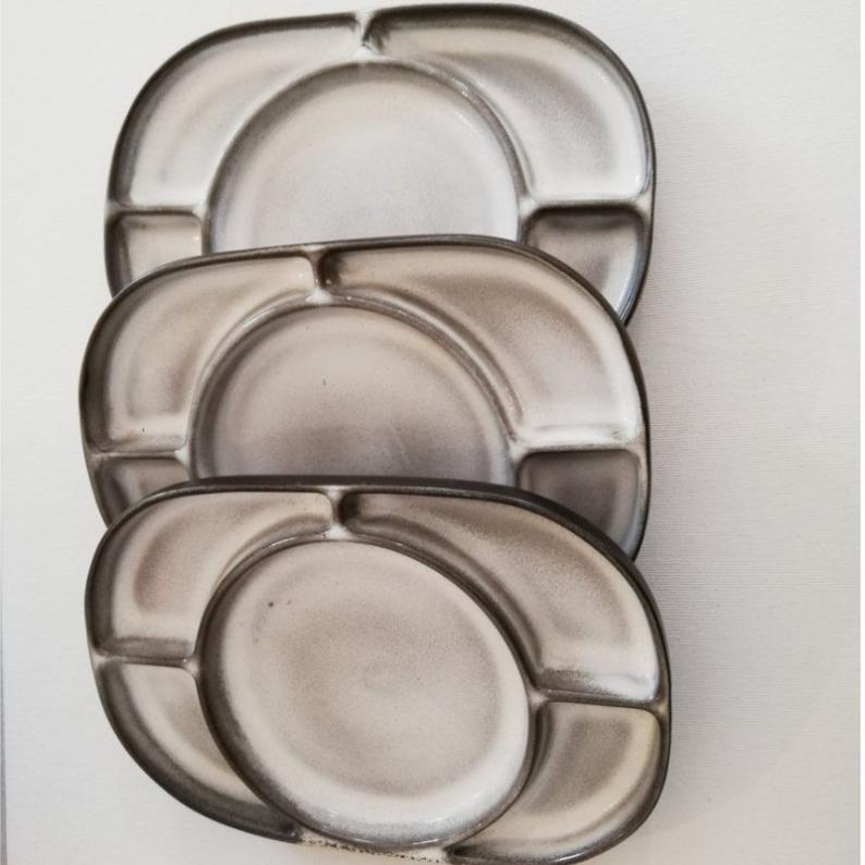 tolle Vintage / Midcentury Fondue Chinoise-Teller aus den 70ern / rar