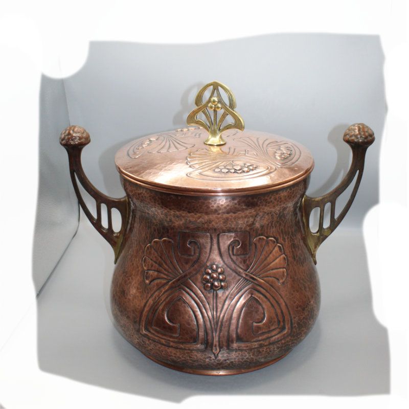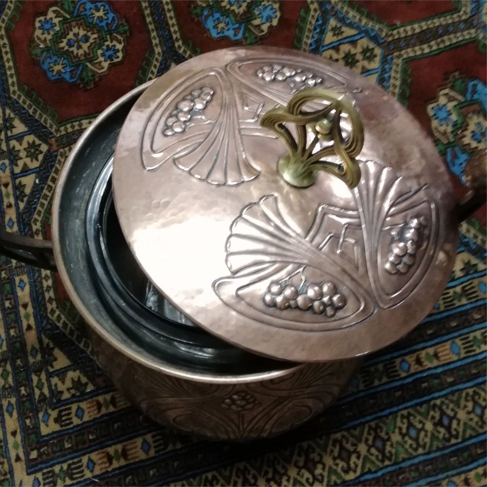 antiker Sektkühler / WMF Jugendstil Kupfer-Bowle mit Glaseinsatz