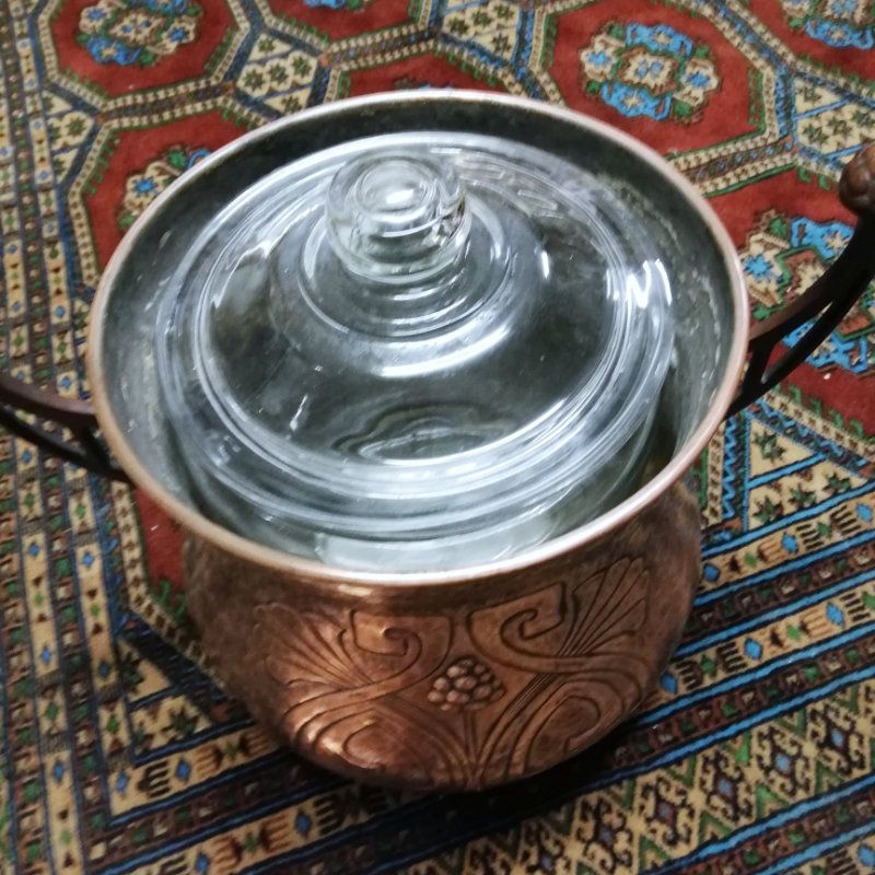 mit Glaseinsatz: ist nachträglich ersetzt worden - Gefäss passt - Glasdeckel wird mitgeliefert, so gewünscht (s. Fotos)