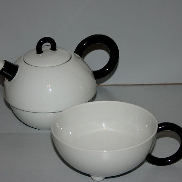 Teekrug mit Tasse stapelbar konzipiert - in Kugelform