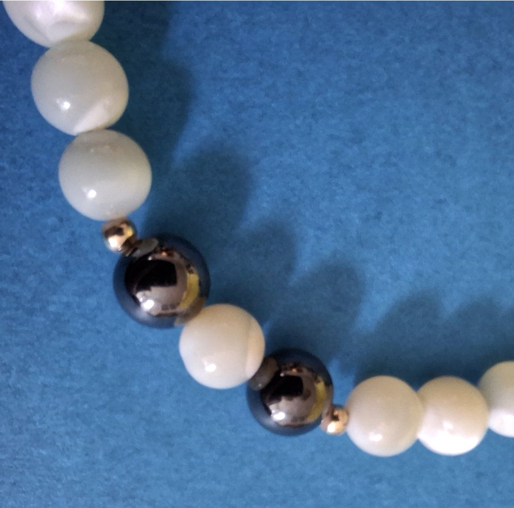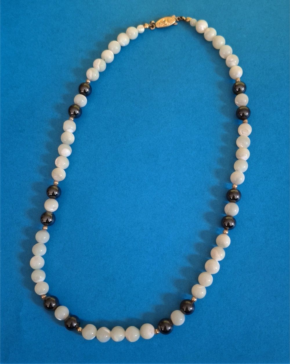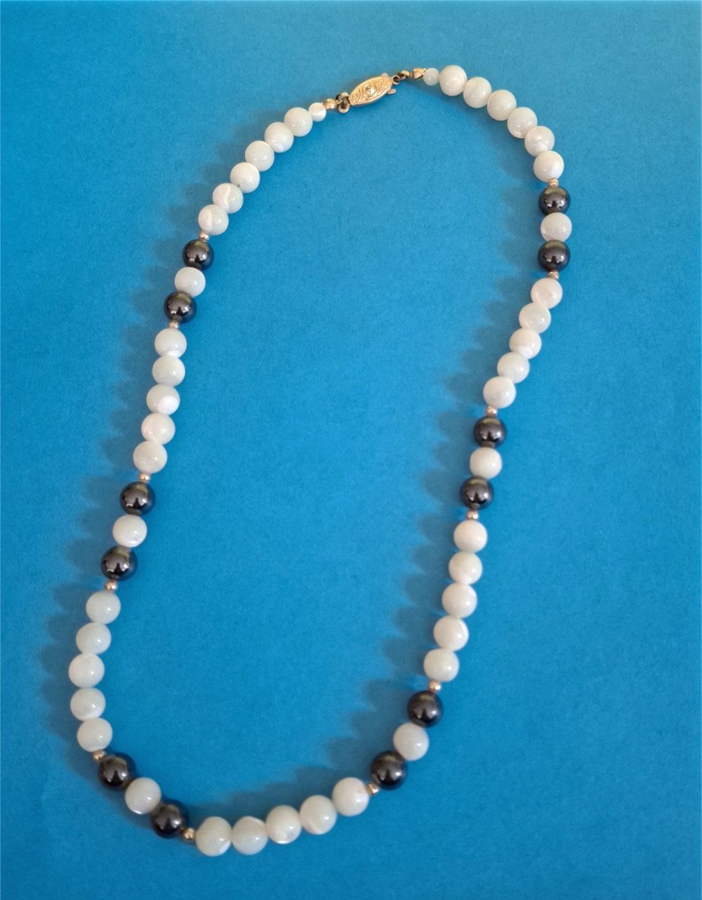 schöne vintage Halskette Mondstein?- & Markasitkugeln und kleinen goldfarbenen Kugeln wohl aus den 80er Jahren Länge ca. 48 cm getragen, gebraucht, schöner Zustand