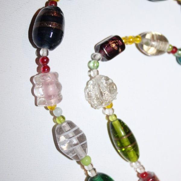 verschiedene Glasperlen, klein, gross,mit Spiraldekor, Glitterdekor, Glaseinzug, Noppendekor etc.