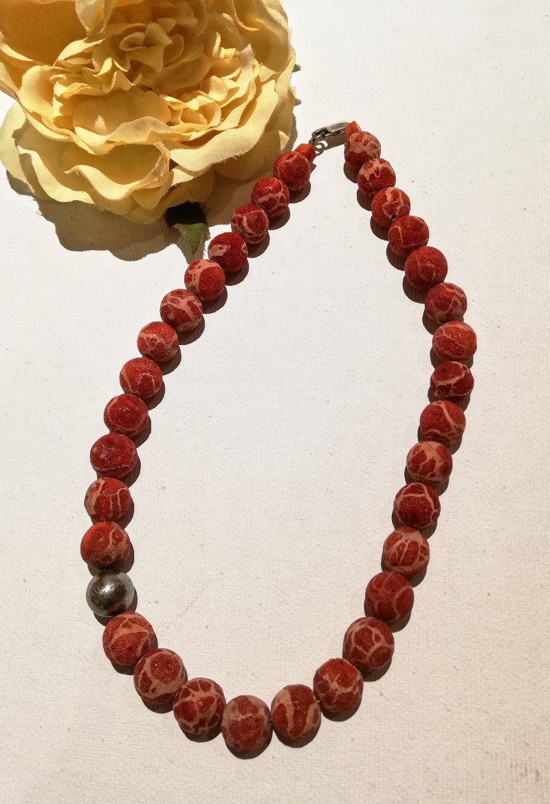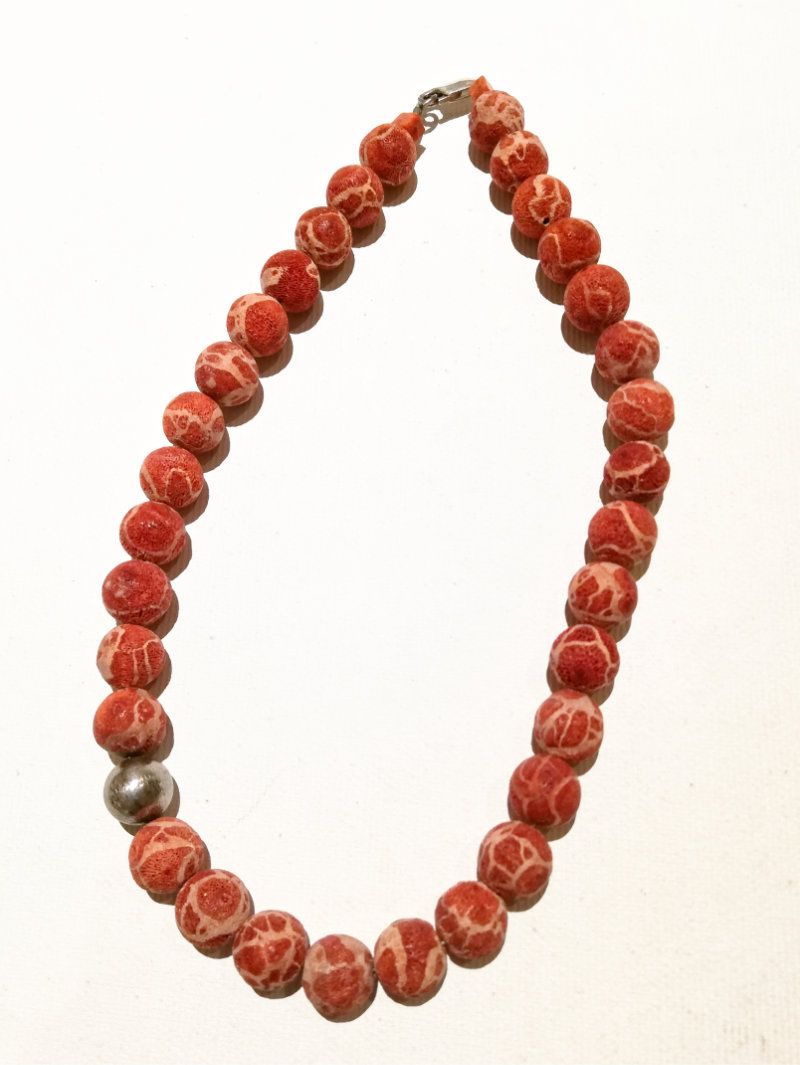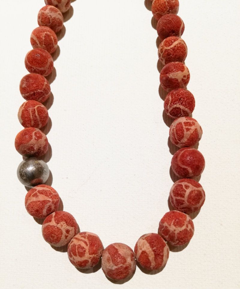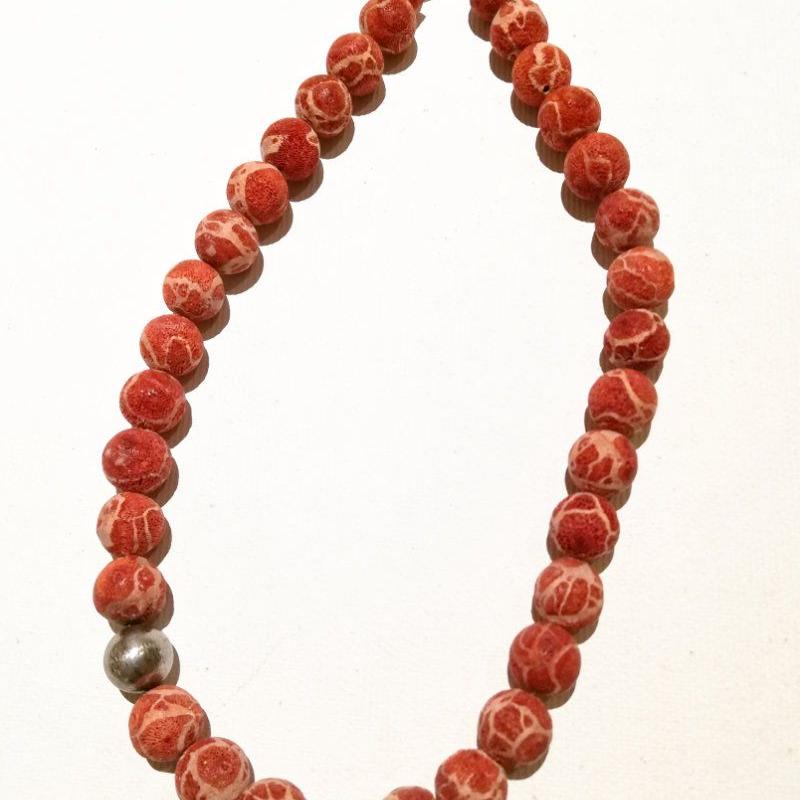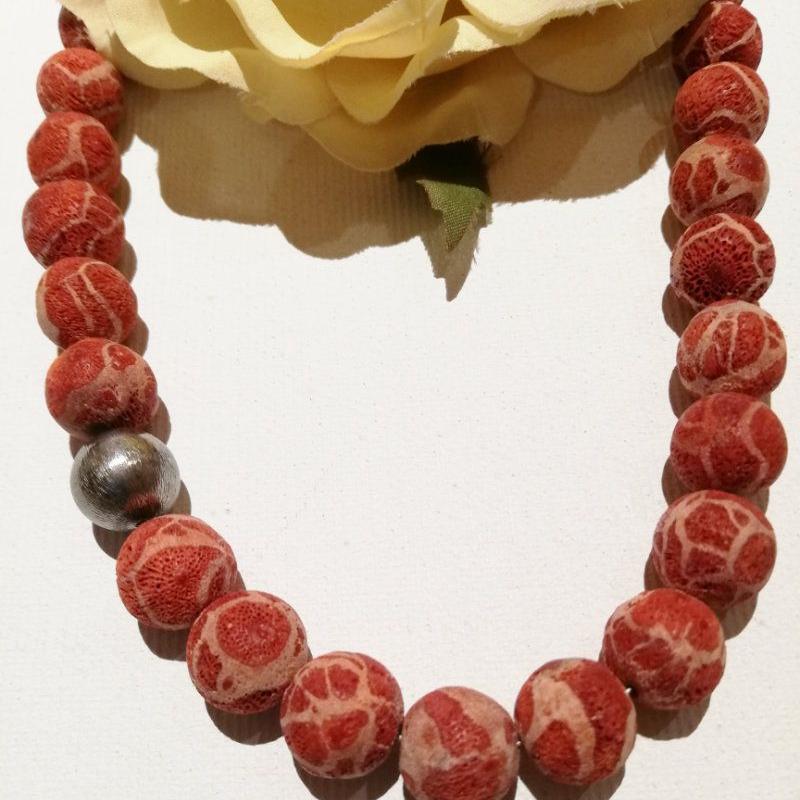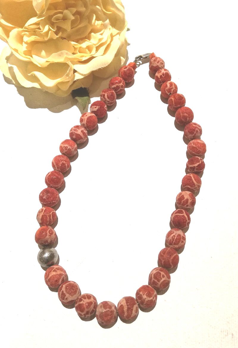 schöne Schaumkorallenkette mit matt-silberfarbig. Kugel