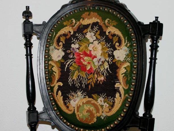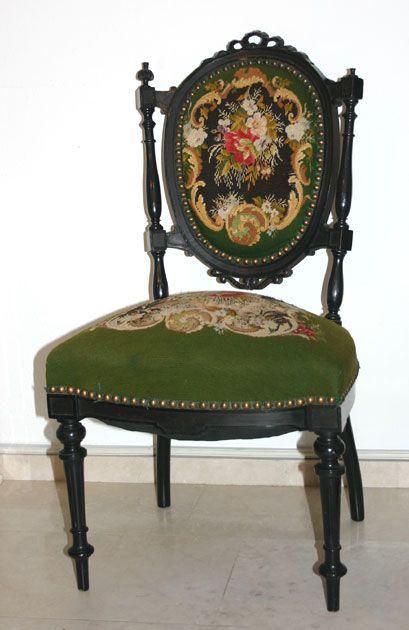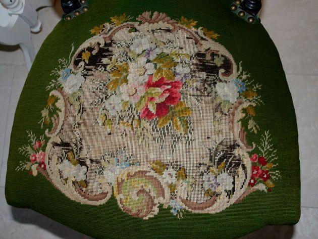 Holz, Federpolsterung, Goblinstickereibeizug Sitz (s. Foto)